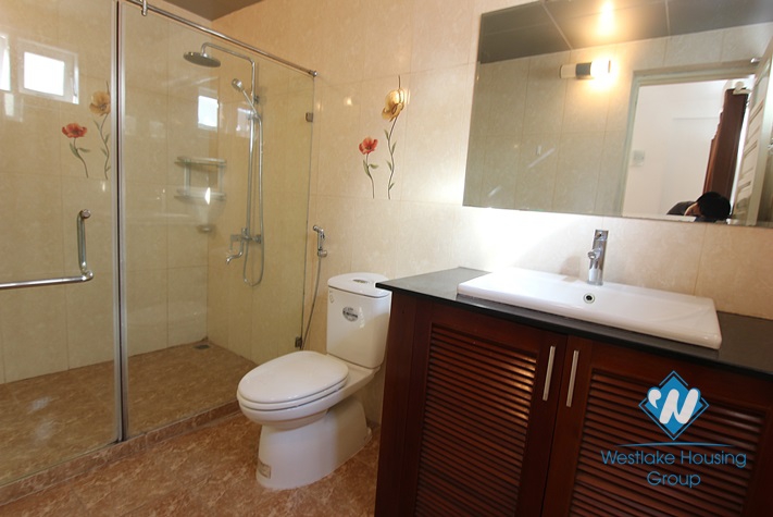 The apartment has 02 bedrooms, 03 bathrooms. It is a high quality apartment with well designed furniture, bright and quiet. The size is 110 sqm including a living room, kitchen, dining space, 2 bedrooms with wardrobes, 2 bathrooms. It is very airy and the landlords are friendly. The rental is inclusive of internet and cable TV.