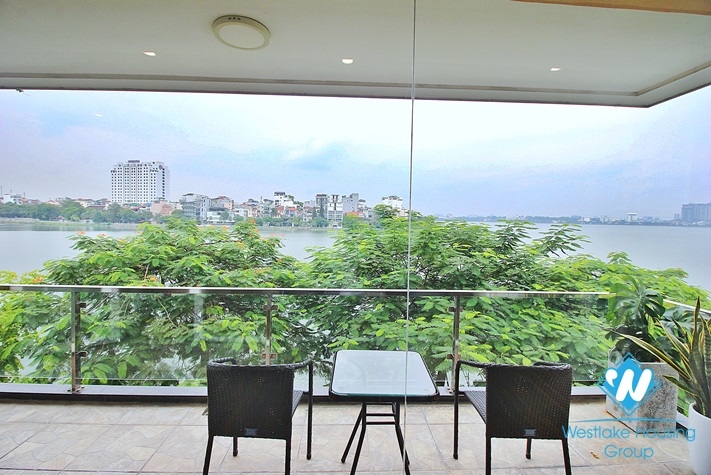 This fantastic apartment is on 3rd floor of the modern building, located on lake side road of Quang An street. The property has the size of 150 sq.m, comprises of 03 good sized bedrooms, 03 bathrooms, fully fitted kitchen with modern appliances connected to dining space, bright and airy living room with lots of natural light. In addition, this one has a large outside balcony with beautiful view of Westlake. The apartment is well furnished with nice interior. The building is in a great location, easy access to city centre, near shops, restaurants, coffees, bars..