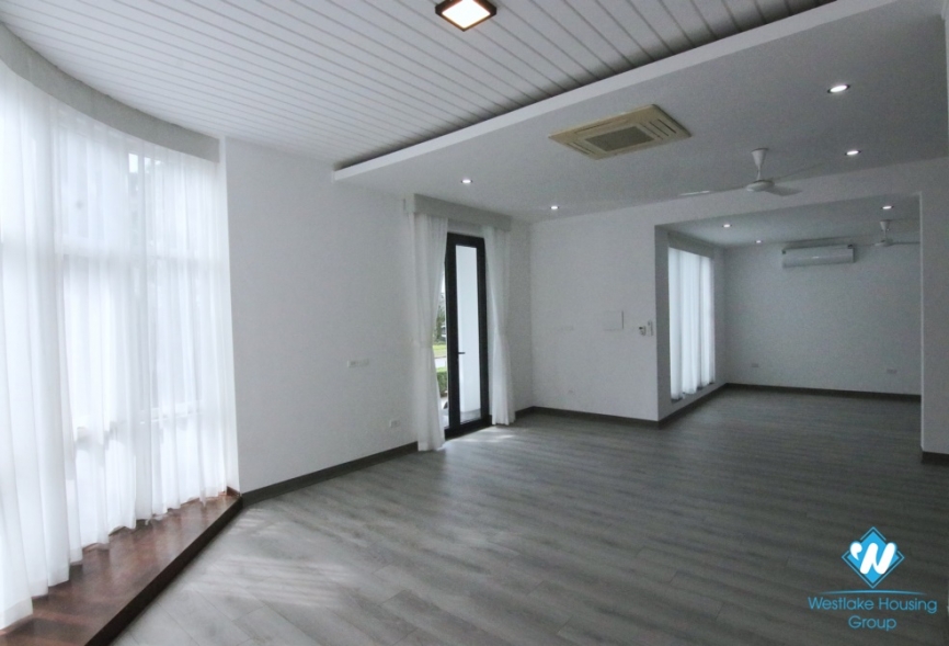 Brand new 4 bedrooms villa for rent in Ciputra, Tay Ho. It located on new block, this villa is furnished and morden quality. With the size is 180sqm x 4 floors, composed of big luxury handcraft wooden sofa set with seat cushions, new kitchen, bright 4 bedrooms and 4 bathrooms with walk-in and bath-tub shower. Call us for a viewing!