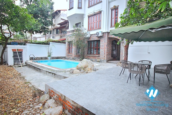 A charming house is located on a good location of West lake area, quiet and peaceful, nice neighborhood, easy access to city centre, lots of nearby facilities. With the land area of 220 sq.m, the construction area is 100 sq.m, the house has 03 floors, plus 01 roof floor for storage. There are a large courtyard with green trees at front side, a beautiful swimming pool and a playground at the back side of the house. This property comprises of a spacious living room with lots of natural light, a separate kitchen with nice wooden cupboard, 04 bedrooms and 03 bathrooms, large outside balcony with open view. Please contact us to arrange a visit!