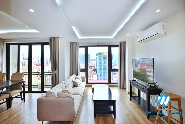 Brand new one bedroom apartment for rent in Dang Thai Mai area, Tay Ho, Ha Noi. With the size of 70sqm, this apartment is full furnished. It's on high floor and quiet area. This building has gym area and rooftop for chilling like BBQ. Call us for a viewing!