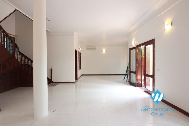 A nice 4 bedroom house for rent with big yard in Tay Ho, Ha Noi. The total living space is 450sqm, big living room and kitchen, 4 bedrooms and 4 bathrooms. It is located in quiet area, walking to the lake, park.... Call us now for more information.