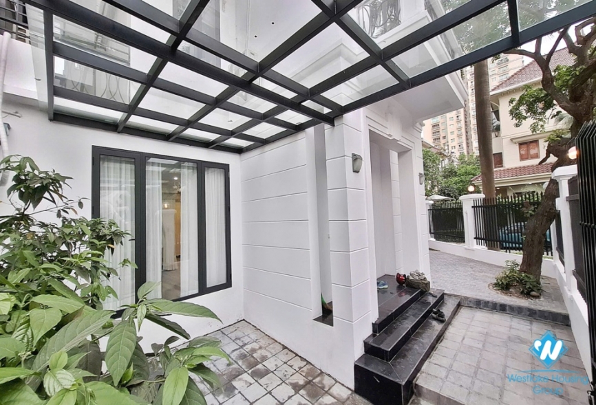 A spacious villa for rent in D block in Ciputra, Tay Ho. It is located in quiet area, close to schools, gym,... and easy to go to other districts too.