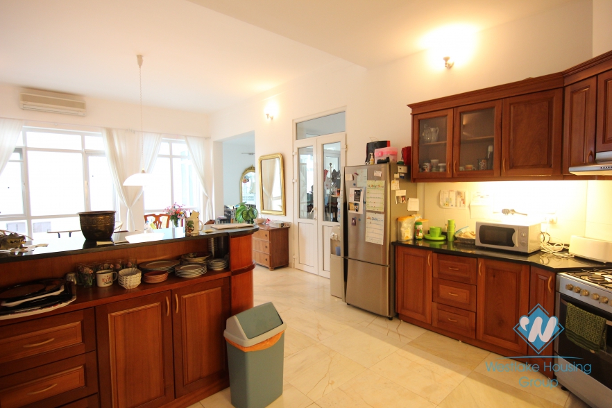 Serviced 4 bedrooms house for rent in Tay Ho ward, Ha Noi. The usable space of 340sqm, this house is fully furnished and serviced (the rent included: wifi, cable, water, car&motorbike parking, breakfast, gym, pool, etc.). It located on center of Tay Ho where there are many coffee shops, restaurants, winmarts, nearby. Call us for a viewing!