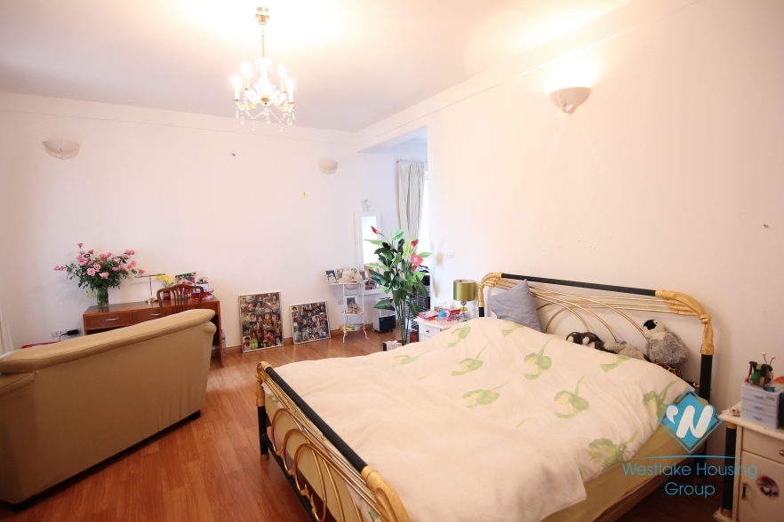 Spacious garden house with out-door pool for rent in Tay Ho, Ha Noi. It has 550sqm land size, the usable space of 150sqm x 4 floors. Out-door space with the out-door pool and big yard for parking. The first floor is large living room and closed kitchen, upstairs with 5 bright bedrooms and 5 bathrooms. Located on center of Tay Ho, many restaurants, coffee shops, winmarts nearby. Call us for a viewing!